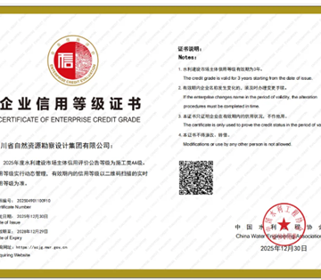 近日,中国水利工程协会发布2025年度水利建设市场主体信用评价结果,四川省自然资源勘察设计集团有限公司荣获水利施工单位信用评价最高等级——AA级。