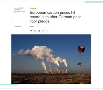 据路透报道,德国即将上任的联合政府表示将对本国碳价格设置地板价(不允许碳价跌至每吨60欧元以下)之后,11月24日欧洲基准碳合约创下每吨73.18欧元的新高。
