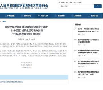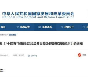 5月6日,国家发展改革委、住房城乡建设部联合下发关于印发《“十四五”城镇生活垃圾分类和处理设施发展规划》的通知(发改环资〔2021〕642号)。