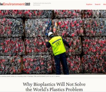 耶鲁大学环境学院网站发表署名Jim Robbins的文章,题目是:Why Bioplastics Will Not Solve the World’s Plastics Problem(为什么生物塑料不能解决世界塑料问题)。