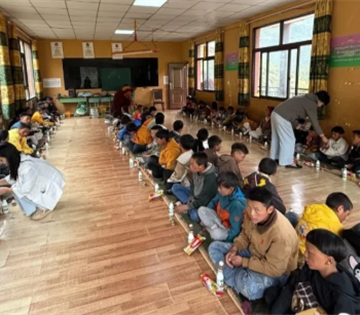 2025 年 7 月 29 日 瑞能阳光公益基金会带着全体员工的牵挂 再次踏入甘孜藏区腹地 来到德格县慈祥光明学校 为孩子们送上精心筹备的助学物资和捐款