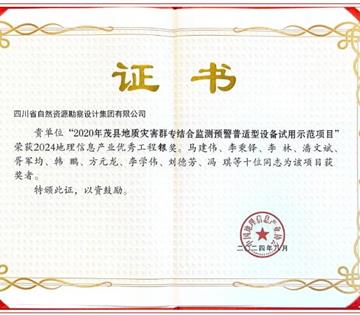 大会对地理信息产业优秀工程进行了表彰,集团公司承担的“2020年四川省茂县地质灾害群专结合监测预警普适型设备试用示范项目”荣获2024地理信息产业优秀工程银奖。该项目对进一步提高应急处置能力,提升地质灾害防治成效有着推动作用。