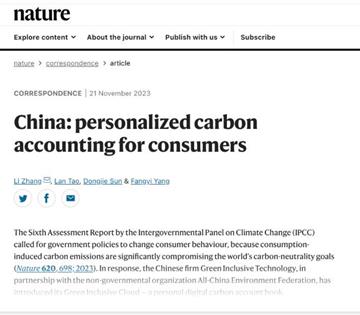 联合国气候变化框架公约UNFCCC第28届缔约方大会11月底即将在迪拜召开。今年发布的政府间气候变化专门委员会(IPCC)第6次评估报告呼吁各国政府通过政策倡导来改变公众的消费行为,因为消费端引发的温室气体排放可能显著阻碍了全球碳中和目标的实现。中华环保联合会与绿普惠合作推出“绿普惠云-碳减排数字账本”,即“个人数字碳账本”。该平台允许用户授权记录计量个人和中小型企业进行的绿色低碳行为减排量。这些个人减排行为可以在“绿普惠云”平台上进行跟踪,并通过大数据技术计算并记录由此产生的碳减排量。