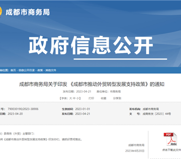 4月21日,成都市商务局网站发布《成都市推动外贸转型发展支持政策》政策指出:自2023年1月1日-2023年12月31日,支持我市出口企业开展碳足迹核查,对取得碳足迹核查证书或报告的,给予核查、认证及相关服务费用100%支持,每个企业每年不超过10万元。
