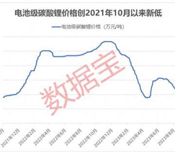 碳酸锂是生产锂离子电池正极材料的关键原材料,每生产一吨磷酸铁锂大约需要消耗0.25吨碳酸锂。上海钢联近期发布的数据显示,国内电池级碳酸锂均价每吨再度下跌至20万元以下。记者注意到,这是电池级碳酸锂均价今年内第二次跌破20万元/吨。