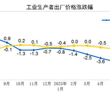 2023年7月份,全国工业生产者出厂价格同比下降4.4%,环比下降0.2%;工业生产者购进价格同比下降6.1%,环比下降0.5%。1—7月平均,工业生产者出厂价格比上年同期下降3.2%,工业生产者购进价格下降3.5%。