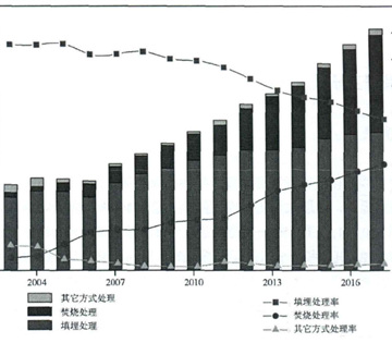 我国的垃圾量正在逐年上升,2004年我国的垃圾产量超过美国成为第一大垃圾制造国,2019年我国垃圾清运总量已经达到2.42亿吨,且近年来增长率在不断上升。除此之外,人均垃圾清运量一直在1千克以上,2017年达到1.2千克,其水平髙于亚洲周边国家,如韩国的1.05千克/人/日以及日本的0.93千克/人/日,但是低于欧美一些发达国家的水平,例如美国和丹麦的人均清运量基本维持在2千克以上。其中,生活垃圾处理中的温室气体排放是近年来国际关注度比较高的问题之一。