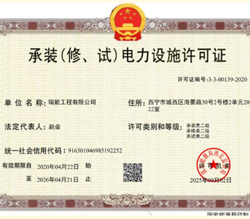 近日,瑞能电力旗下核心公司——瑞能工程,凭借扎实的技术研发实力、规范的项目管理体系及丰富的大型电力项目服务经验,顺利通过国家能源局严格审核,成功取得承装(修、试)电力设施许可证,正式晋升为承装二级、承修二级、承试二级资质企业!