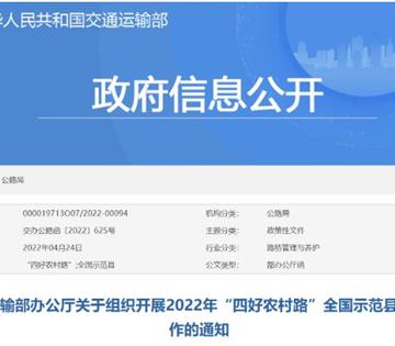 2022-04-27 2022年“四好农村路”全国示范县开始申报! 《通知》明确了“四好农村路”全国示范县创建及复核申报程序、报送方式和时间安排,公布了抽取复核的已命名示范县名单,以及示范县核查评分细则。《通知》要求各省级交通运输主管部门要加强组织领导和监督指导,