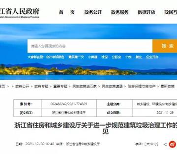 近日,环卫科技网从浙江省住建厅网站获悉,《浙江省住房和城乡建设厅关于进一步规范建筑垃圾治理工作的实施意见》已于日前发布,意见要求,建筑垃圾要按照工程渣土、废弃泥浆、工程垃圾、拆除垃圾、装修垃圾五大类实行分类处理,末端则要以资源化利用为导向。