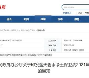 2021-10-18 地方政策丨《陕西省蓝天保卫战2021年工作方案》 2021年8月27日,陕西省人民政府办公厅印发《蓝天碧水净土保卫战2021年工作方案》,其中,《陕西省蓝天保卫战2021年工作方案》要求,到2021年底,全省清洁取暖率达80%以上。
