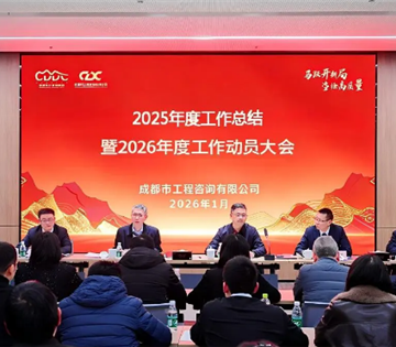 1月28日,成都市工程咨询有限公司召开2025年度工作总结暨2026年度工作动员大会。集团党委副书记、副董事长、总经理陆辉,集团党委专职副书记、董事、工会主席刘洋海出席。公司党总支书记、董事、总经理陈崎虎主持会议。公司领导班子、公司及鱼凫咨询公司全体员工参加会议。