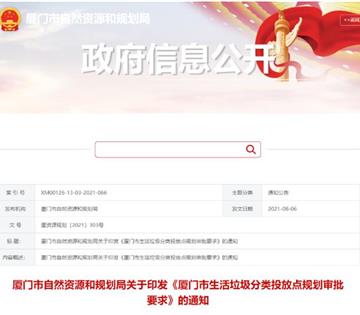 为规范生活垃圾分类投放点规划审批工作,根据厦门市垃圾分类工作领导小组办公室相关文件精神,厦门市自然资源和规划局日前发布了 《厦门市生活垃圾分类投放点规划审批要求》(以下简称《要求》)。