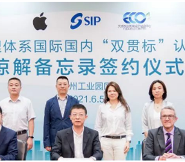 水是生命之源、生产之本、生态之基。在6月5日世界环境日之际,国家级经开区绿色发展联盟秘书处-泰达低碳中心与苏州工业园区管理委员会、苹果公司(Apple Inc.)签署三方谅解备忘录,共同推动全球首例、国内首个产业园区可持续水管理体系国际国内“双贯标”认证示范项目在园区落地。