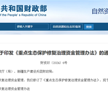 近日,财政部修订发布《重点生态保护修复治理资金管理办法》(以下简称《办法》),旨在加强重点生态保护修复治理资金管理,提高资金使用效益,促进生态系统保护修复。《办法》自发布之日起施行,实施期至2028年年底。